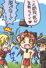 >おきらく劇場楽しく読ませていただいてます♪これからもがんばってください^^ ありがとうございますです〜(´▽`* 人数が多いのでなかなか全員活躍させられないのが悔しいとこですが、楽しいお話になるようがんばっていきますよ〜!